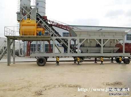 移动搅拌站装有轮胎、牵引鞘、行车信号装置、刹车系统,拖车拖动时允许速度可达50公里/小时。