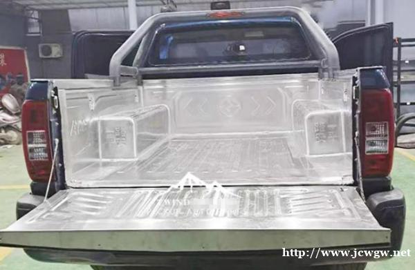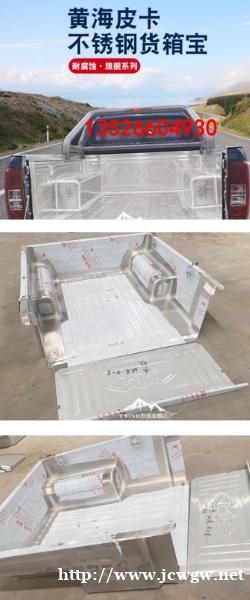 黄海皮卡车冲压不锈钢后箱宝尾箱垫子改装件,不锈钢材质,高温不变形,抗压耐腐蚀,不易生锈,有效保护新车漆面。采用满焊工艺,美观又防水。原车车厢开模,吻合度高。自带绑绳挂钩,方便实用。多款皮卡车型均可安装。