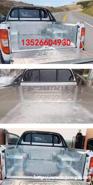 23年江铃宝典域虎皮卡车不锈钢后箱宝尾箱垫子,不锈钢材质为201不锈钢,高温不变形,抗压耐腐蚀,不易生锈。采用满焊工艺,美观又防水。原车开模,与车厢吻合度高。自带绑绳挂钩,方便实用。可以保护原车斗。