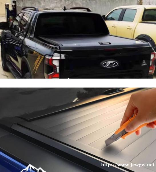 23款福特ranger游骑侠皮卡车卷帘后箱盖子改装,有手动、电动款式。加厚铝合金材质,重量轻,耐磨耐腐蚀,承重力强。二挡启停,空间利用率大。自带导水管,手动卷帘带拉绳辅助,开合方便。带锁防盗,免打卡安装,方便快捷。