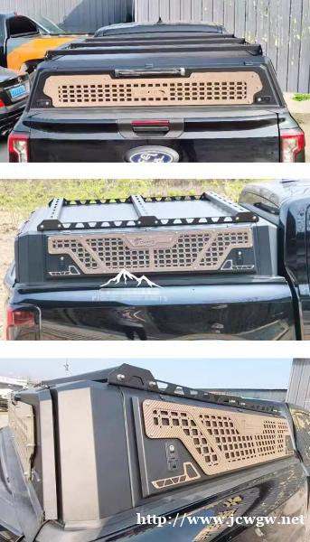 23款新款游骑侠ranger皮卡车后备箱半高盖改装,半高三开门后盖,锰钢材质,整体打磨,结实耐用。多功能侧边拓展板,带高位刹车灯,提高行车安全。液压升降窗盖,快速开合。带锁设计,安全防盗。安装免打孔,方便实用。
