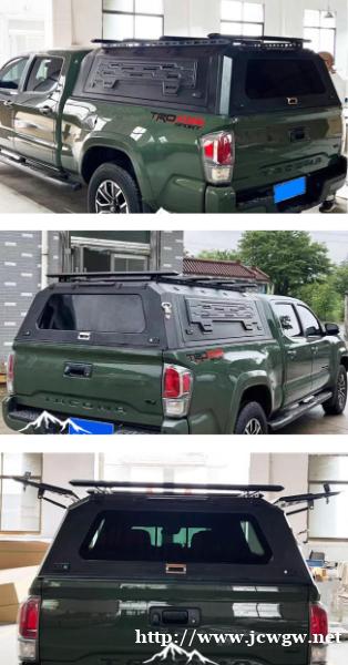 塔库玛TACOMA皮卡车后箱尾箱货箱高盖改装件,全金属材质,三开门设计,尾门及两侧可打开,均带有液压撑杆,便于开启闭合,均带锁。整体打磨,结实耐用。带脚蹬,可登盖顶,带高位刹车灯。安装免打孔,不伤车身,方便快捷。