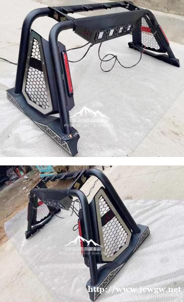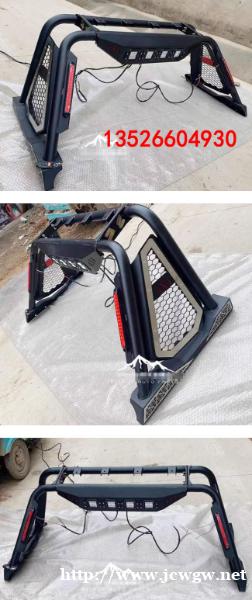 福特F150猛禽坦途公羊皮卡车带灯款龙门架防滚架改装件,带灯设计,锰钢材质,坚固耐用,防护实用。采用静电喷涂工艺,耐磨防腐蚀。安装后增强立体感造型,提升档次哦。安装需打孔。