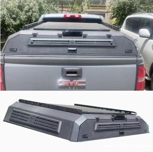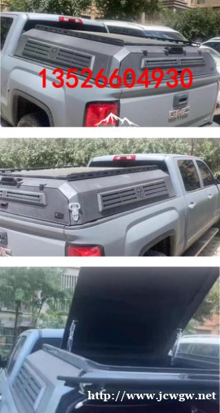 22款通用GMC皮卡车锰钢半高盖后箱盖子改装件,原车数据开模,贴合车身。全金属材质,镀锌铁板,承重400KG以上。带有高位刹车灯,提高行车安全。一侧带脚蹬,可登盖顶。带液压撑杆,方便实用。安装免打孔,带有锁,安全防盗。