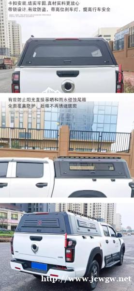 长城炮标箱加长皮卡车整体三开门后箱盖高盖改装架,锰钢材质,侧窗带玻璃款,整体打磨。带有液压升降窗盖,快速开合,轻松打开。带高位刹车灯,提高行车安全。卡扣固定安装,免打孔,结实牢固。带锁设计,安全放心。