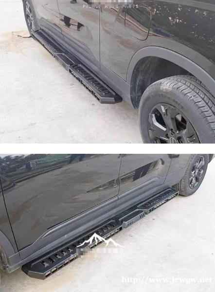 雷达RD6/RD5金刚皮卡车驾驶室侧踏板改装件,优质碳钢材质,承重能力强,加厚面板,踩踏稳固。采用激光满焊高温喷粉工艺,耐磨耐腐蚀。安装便捷,结实耐用。原车孔位安装,拆卸简单,防刮耐磨。