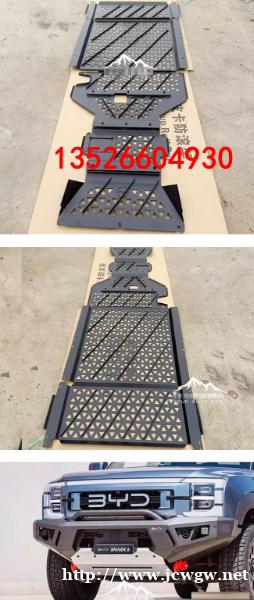 比亚迪鲨鱼shark皮卡车下护板防护壳改装,镀锌铁板,预留散热通风孔,结实耐用。原车底扫描数据开模,稳固贴合车身底盘。表面采用激光满焊,高温喷粉工艺,耐磨耐腐蚀。原车孔位安装,质量有保障。