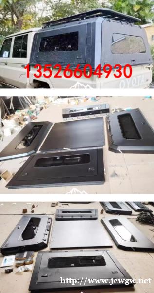酷路泽lc79皮卡车三开门高盖锰钢后箱盖子,推拉窗后盖,锰钢材质,整体打磨。电泳防锈处理,结实耐用。液压升降窗盖,开合方便,便于通风换气。卡扣安装,免打孔,带锁防盗,安全放心。带高位刹车灯,提高行车安全。