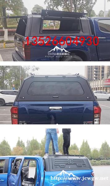 江西五十铃dmax皮卡车三开门后箱高盖改装件,全金属材质,遮阳挡雨,结实耐用。全冲压装饰板,冲压云纹设计,一侧带脚蹬,可登盖顶。带有液压升降窗盖,开合灵敏。免打孔安装,卡扣固定,方便快捷,三侧带锁,安全放心。