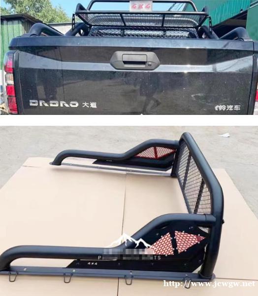 江铃大道追光者敢探者皮卡车带筐龙门架放护栏架子改装件,镀锌铁管材质,加厚板材,经久耐用。采用激光满焊,静电喷粉工艺,防腐蚀性强。贴合原车设计,安装后增强车身立体感。打孔安装。