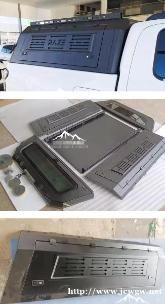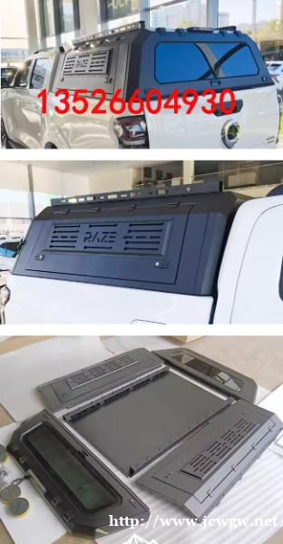 长城炮国际版标箱炮皮卡车三开门后箱盖尾盖改装件,锰钢材质,整体打磨,结实耐用。液压升降窗盖,方便省力。尾门,两侧窗均可打开。原车数据开模,吻合服帖。一侧带脚蹬,可登盖顶。带高位刹车灯。免打孔,固定卡扣安装。带锁防盗。