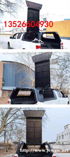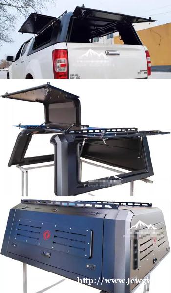 江西五十铃dmax瑞迈铃拓皮卡车连顶开四开门后箱高盖改装件,锰钢材质,整体打磨。遮阳挡雨,结实耐用。原车数据开模,贴合原车。带有液压升降窗盖,开合灵敏。免打孔安装,卡扣固定,方便快捷,带锁设计,安全放心。
