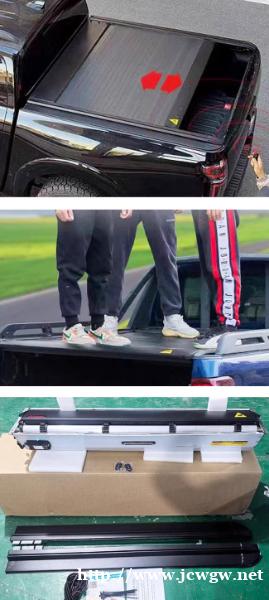 道奇公羊ram1500皮卡车电动卷帘平盖改装件,铝合金材质,加厚板材,承重力强。电动卷帘,有效防盗,没有遥控器打不开。带灯设计,夜间取物方便,照亮车厢。免打孔固定,部分车型需打孔安装。内设导水管和防水胶条,有效防雨保持箱内干燥。