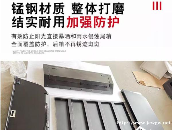 16至23年份5ft三菱l200皮卡车三开门后箱盖改装,全封闭无玻璃款式,锰钢材质,整体打磨,结实耐用。卡扣安装,免打孔。带锁设计,有效防盗,带高位刹车灯,提高行车安全。液压升降窗盖,方便省力。原车数据开模,贴合车身。