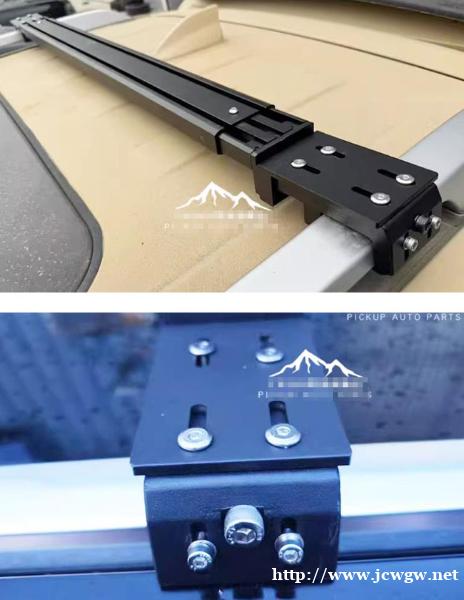 23年游骑侠ranger皮卡车龙门架横杆行李架改装件,优质铝合金材质,承重性强,更安全稳定。利用悬空支架固定到原车塑料龙门架的纵杆上,安装牢固,无异响。