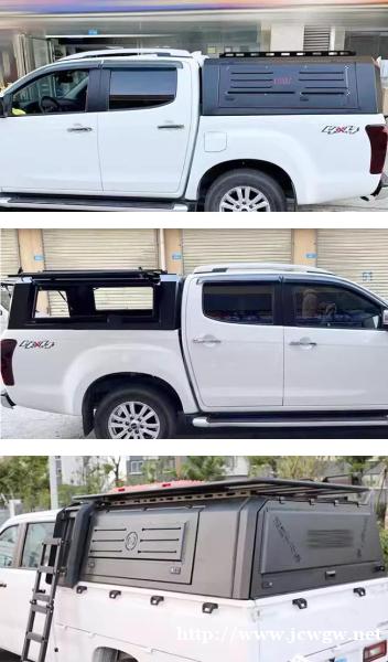 16-23款江西五十铃dmax瑞迈铃拓皮卡车全焊接三开门高盖后箱盖,全金属材质,全焊接设计,侧窗,尾门可打开。原车数据开模,贴合车身。带高位刹车灯,提高行车安全。液压升降窗盖,带锁设计,安全防盗。