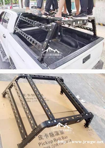 长城金刚炮五十铃DMAX皮卡车矩形龙门架帐蓬改装,优质碳钢加厚材质坚固耐用,防护实用,是一款长宽度可调节的龙门架。带灯设计,使用方便。原车数据开模,贴合原车。增强车身立体感,美观又实用。需打孔安装。