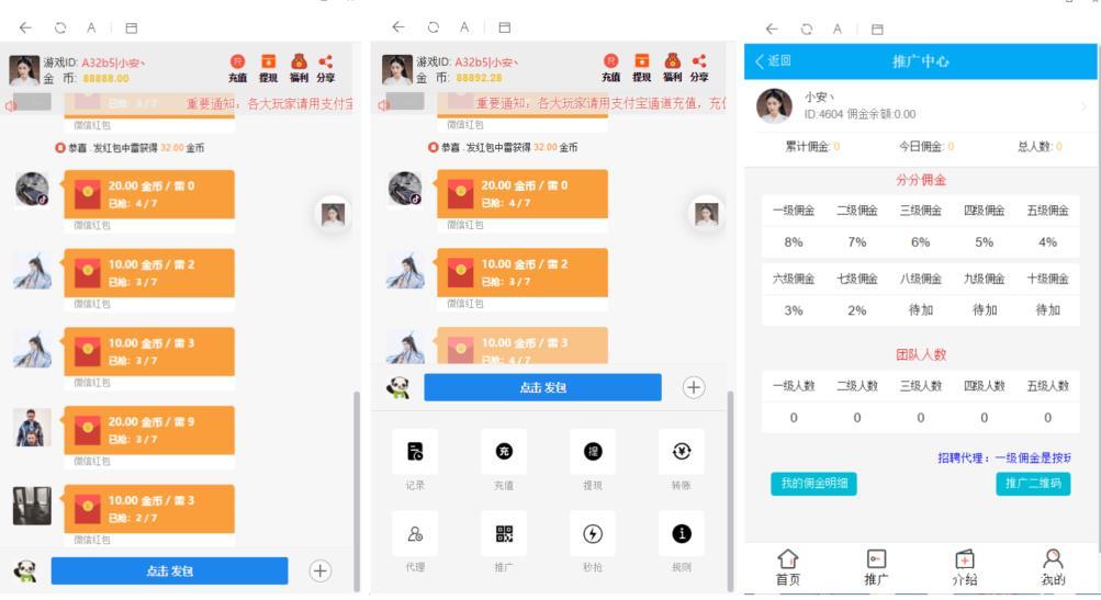 3、前台抢到红包,可申请兑换金额(后台可收到申请,人工去游戏平台给客户转化)